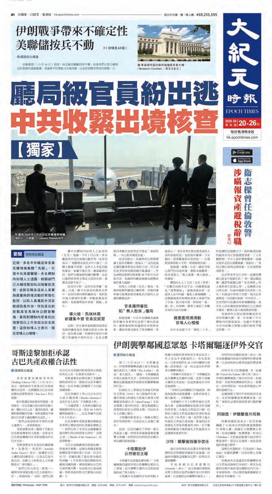 ⋯⋯廳局級官員紛出逃 中共收緊出境核查