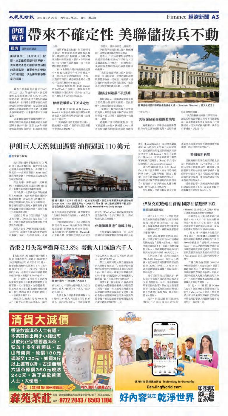 ⋯⋯宏福苑火災舉行首輪聽證會 伊朗戰爭帶來不確定性 美聯儲按兵不動