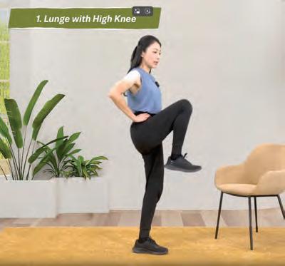 1 、弓箭步抬腿(Lunge with High Knee) 這個動作能同時強化大腿與臀部肌群。