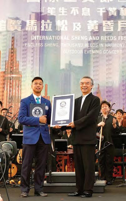 香港中樂團理事會主席賴顯榮律師表示,笙 是中華三千年禮樂文明的活化石。樂團希望透過 古老的笙與西方的口琴、風笛等簧片樂器展開逾 千人合奏,挑戰刷新自 2001 年起,繼胡琴、鼓 樂及笛子後的第四個健力士世界紀錄™ 香港中樂團藝術總監兼終身指揮閻惠昌教授 則說,樂團一直秉承「與民同樂」的理念,致力 將中樂帶入社區。是次活動以創新的形式打破傳 統音樂會的框架,成功召集過千名來自不同年齡 層、不同背景的參加者同台合奏。同時笙這種古 老的中國樂器,能夠與口琴、風笛等西方簧片樂 器同場合奏,展現了音樂無分國界的美好景象, 也讓他看見中樂在新一代薪火相傳的希望。 「國際笙簧節 2026」為期超過半年,後續活 動包括與上海音樂學院合辦的國際學術論壇、中 國笙樂大賽及作品徵集,整項盛事將於 9 月以第 50 樂季揭幕音樂會「千簧一宇」作結。◇