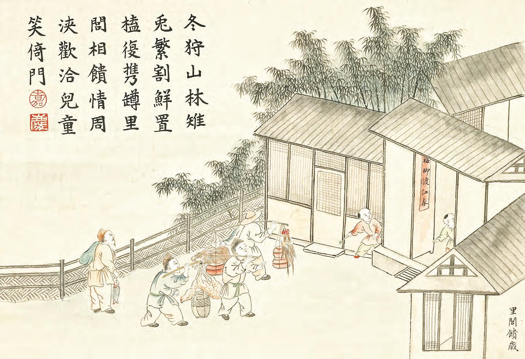 陸游的「鱸肥菰脆調羹美,蕎熟油新作餅 香」,透出鱸魚羹的鮮嫩與蕎麥餅的油香;符曾 的「桂花香餡裹胡桃,江米如珠井水淘」,白淨的 糯米麵包上桃仁桂花餡,又甜又美讓人饞涎欲滴; 嚴辰的「圍爐聚炊歡呼處,百味消融小釜中」,親 朋好友圍爐共享火鍋,溫情與豐盛盡在釜中。