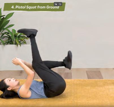 4 、滾地單腳起(Pistol Squat from ground) 這個動作能訓練核心穩定與臀腿控制能力。