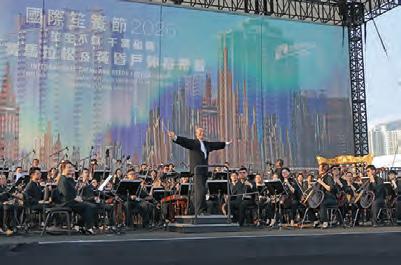 會,樂團藝術總監兼終身指揮閻惠昌為音樂會擔 任指揮,演出曲目包括《闖將令》、《彩雲追月》、 《娛樂昇平》、《電視主題曲組曲》、《太平山下不 夜城》、《送我一枝玫瑰花》及《威廉 泰爾》序曲 選段,不少市民及遊客帶同地蓆細賞音樂會。壓 軸環節由樂團聯同來自北京、上海、貴州等地的 笙演奏家,以及千人馬拉松隊伍,共同首演伍卓 賢創作的《千簧和鳴》,成功刷新健力士世界紀錄 ™「最大規模的簧鳴樂器合奏」。