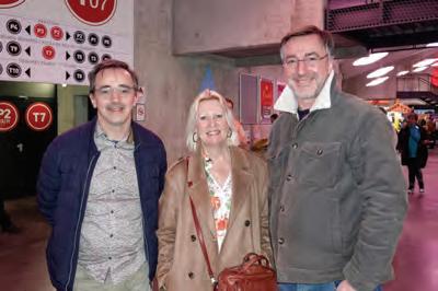 2026 年 3 月 19 日下午,Stéphane V 先生(右)與家人 Catherine(中)、Sébastien(左)在亞眠都市天頂劇 院(Zénith Amiens Métropole)觀看神韻演出。(亦凡 /大紀元)