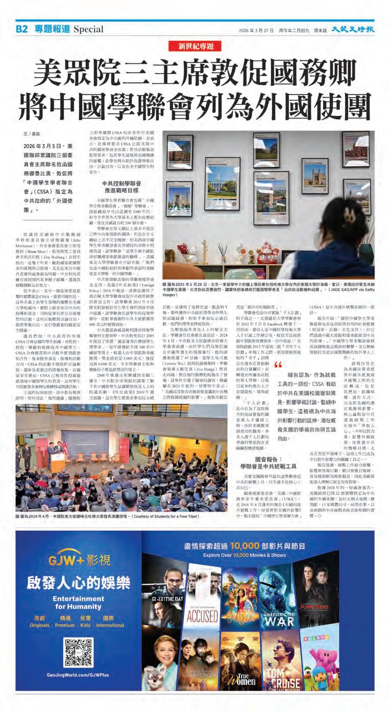 ⋯⋯美眾院主席促國務卿將中國學聯會列外國使團
