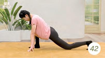 Step2:左膝跪地,小腿背貼地,髖部向下 沉。可手肘撐地加深伸展。