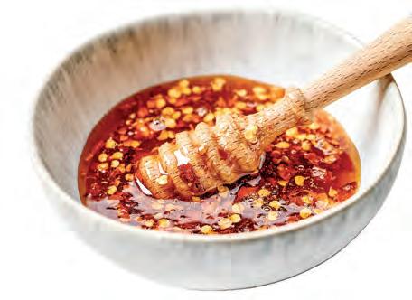 香辣蜂蜜(hot honey): 這款甜辣口味的 調味料是製作美味醬汁的關鍵,在大多數超市 都能買到。