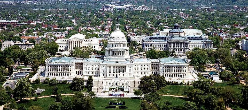 華盛頓特區的美國國會大廈鳥瞰圖。(公有領域)
