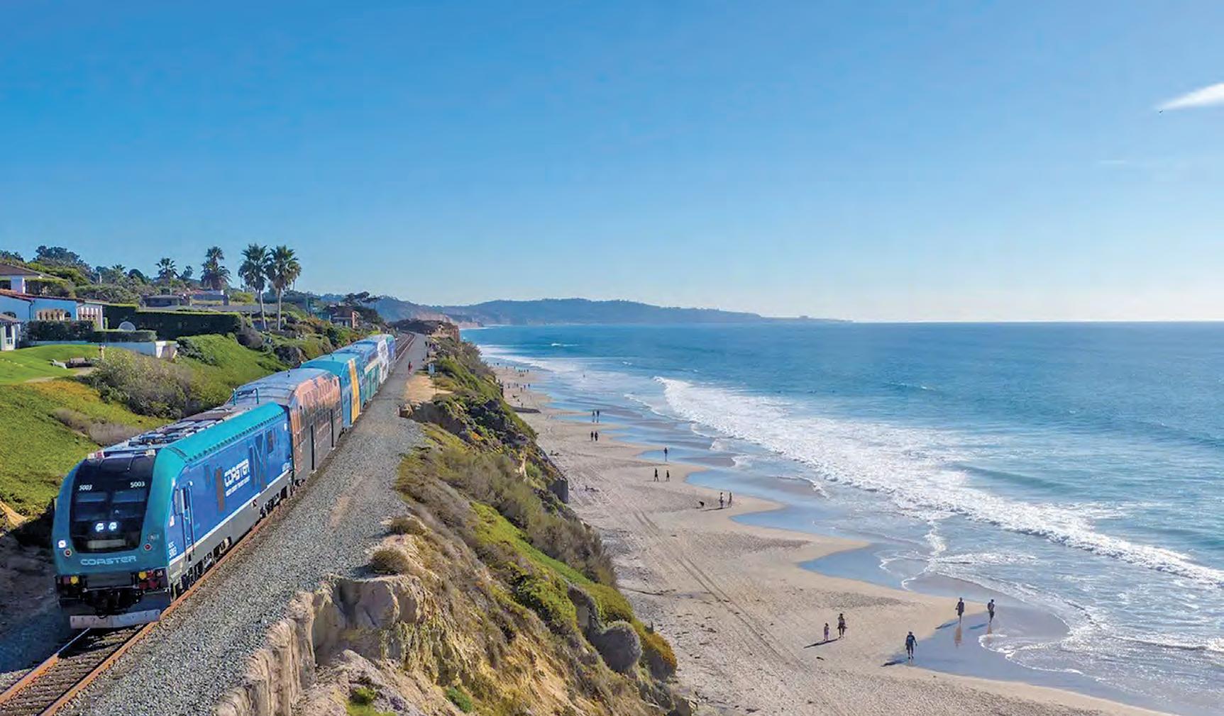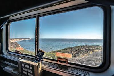 「海岸星光號」列車 (Coast Starlight,美國) 說真的,這絕對是夢境般的體驗。 鐵軌沿著海岸懸崖的頂端蜿蜒起伏,陽光傾 灑在太平洋上。遠處,洛杉磯的燈火依稀可見。
