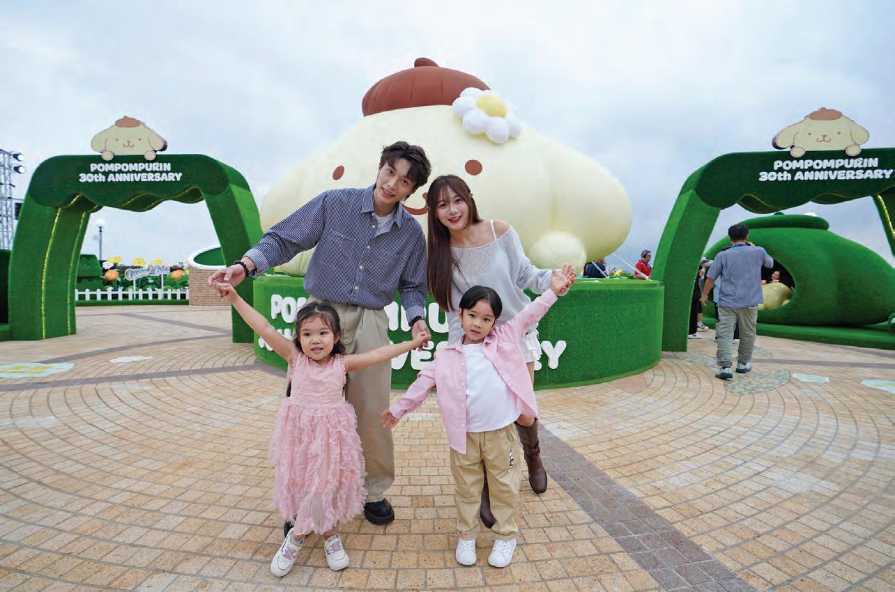 一變成「Pompompurin 30 周年秘密花園」,超巨 型 2.5 米高 Pompompurin 充氣裝置以招牌慵懶姿 態登場,成為廣場焦點卡。步入以 30 周年為主 題的花圃裝置,即會被兩旁精緻可愛的園藝裝飾 包圍。還可於 Pompompurin 的翠綠小屋與好友在 門前一同留影,或是在長椅與 Pompompurin 排排 坐。花園不時更有泡泡輕輕飄浮,為整個場景增 添夢幻感。