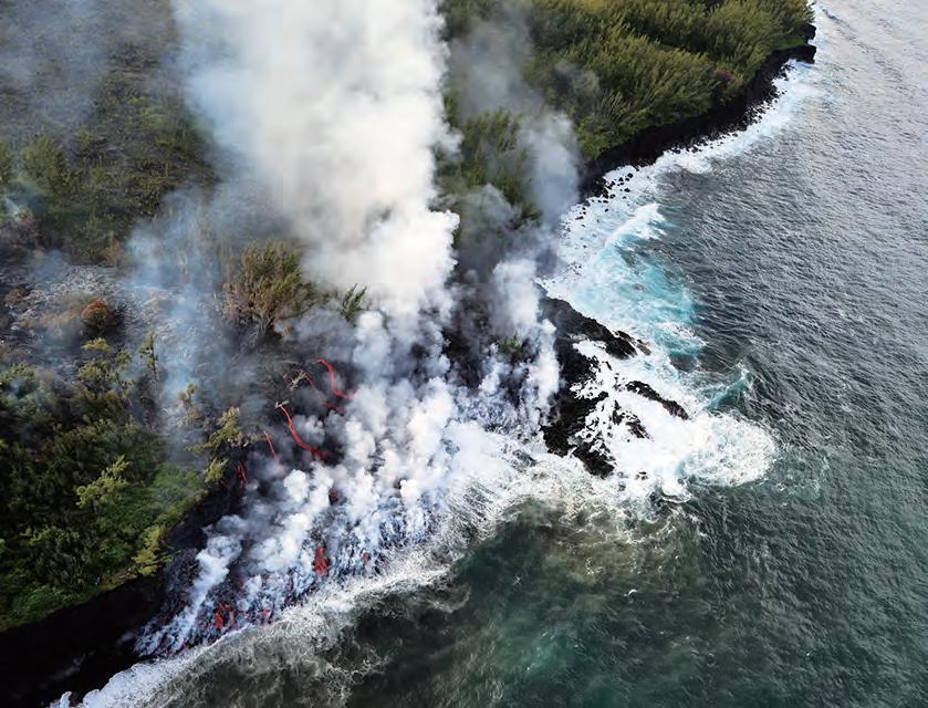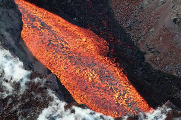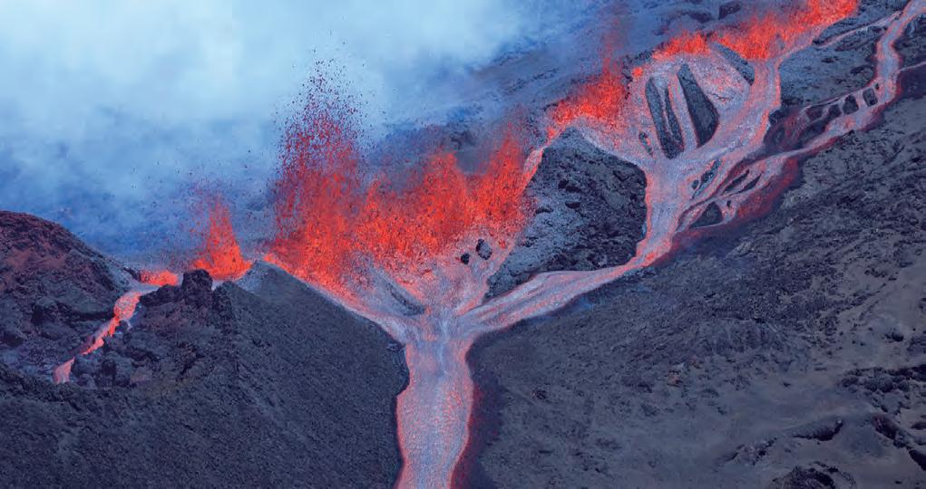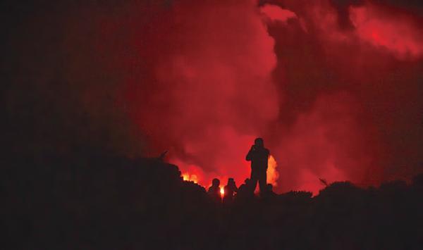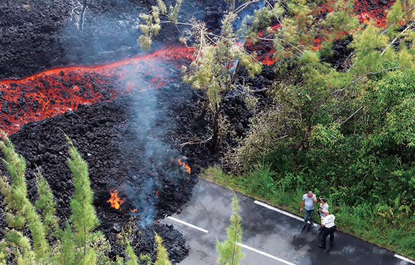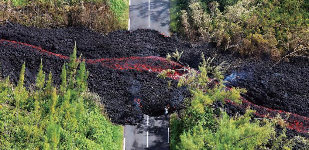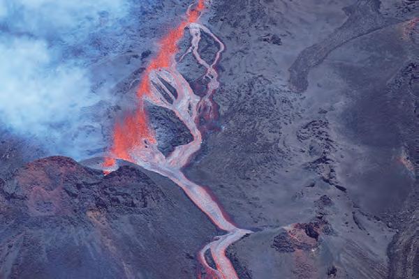 法國海外屬地留尼汪島一 座活火山自上月中旬噴發 以來,壯觀的熔岩流穿越 森林並橫越當地一條主要 公路,導致道路被切斷,