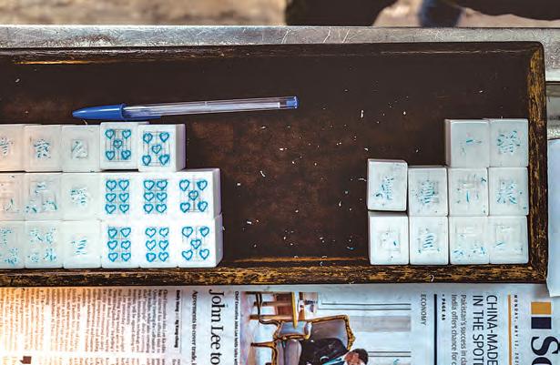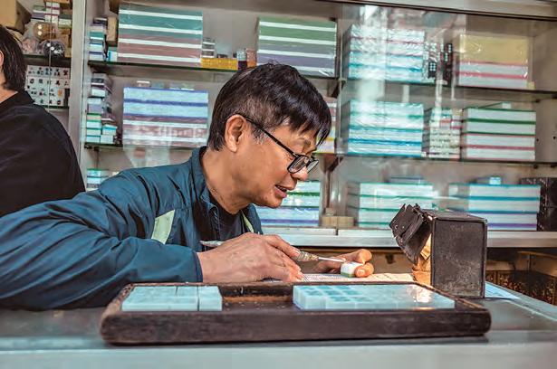 在訪談中,店主詳細分享了手刻麻雀與機器製 造的差異,以及天九與牌九在規格上的分別。天九 牌一般較厚,適合直立擺放與拍牌,牌九則相對薄 身,手感與玩法皆異。早年機器尚未普及,所有麻 雀與骨牌皆由人手雕刻,講求刀工、眼力與經驗。 店主強調,手刻牌不但耐用,而且每副皆帶有細微 差異,這種獨特性與工藝價值,是量產製品無法取 代的。