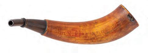 除了政治圖像,展覽亦呈現革命 時期的生活器物,使歷史更貼近人性 與日常。 1756 年製作的牛角火藥號 角,是殖民時期民兵與獵人攜帶火藥 的重要容器。號角表面常刻有地圖、 姓名或戰鬥紀錄,既是實用品,也是 個人歷史的載體。這件號角見證北美