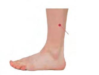 腿外側,外踝尖上五寸 (四橫指上再三橫指),腓 骨前緣凹陷處。