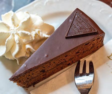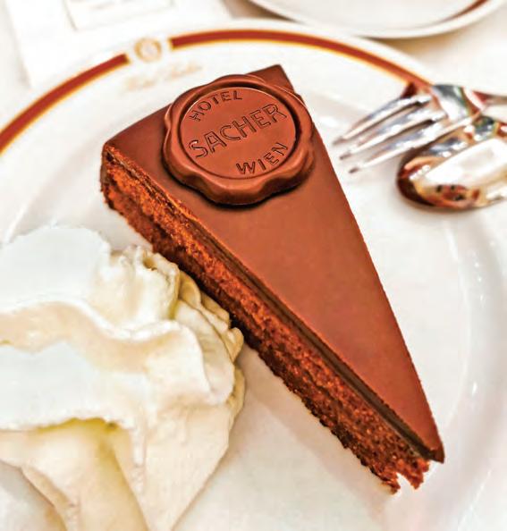 在維也納的眾多甜品中,薩赫蛋糕(Sacher Torte) 可說是奧地利美食魅力的象徵,甚至有人說,沒吃過 薩赫蛋糕,就不算去過維也納。這款蛋糕以其厚實的 朱古力口感、酸甜交織的杏桃層次,以及那如鏡面般 的朱古力淋面,擄獲了全球無數饕客的心。