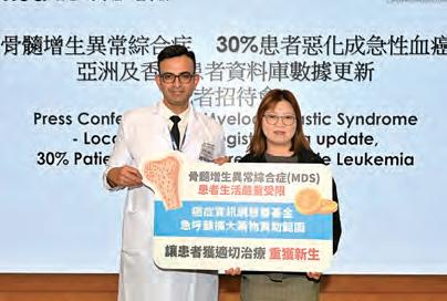 現時治療 MDS 主要依賴輸血,以改善血液 量及舒緩症狀,但輸血「治標不治本」,多次輸 紅血細胞會導致體內鐵質積聚過量,增加器官損 害風險,需額外除鐵治療;免疫系統亦可能排斥 外來血液,導致無法有效補充紅血蛋白;輸血小
