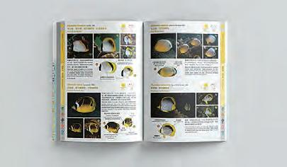 《圖鑑》除了展示牠們水下的千姿百態和辨識 方法外,還載有各種珊瑚魚的常見度。其它內容 包括珊瑚魚歷年的出沒概況,潛水員與魚的互動 與生態故事等,引起讀者的興趣和共鳴之餘,同 時為香港的珊瑚魚留下歷史記錄。