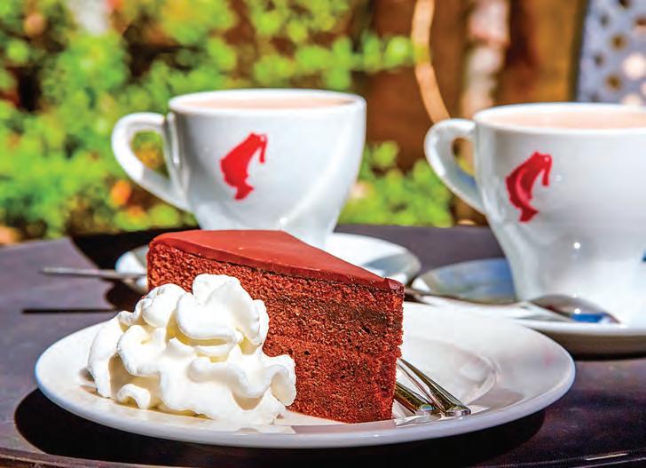 此外,維也納經典咖啡「Wiener Melange」也是不可或缺的搭配飲品。這款 咖啡由一份濃縮咖啡加上適量的蒸氣牛奶 與奶泡組成,在薩赫咖啡館甚至會再額外 加上一圈鮮忌廉。如果你想追求更進階的 搭配,一些饕客會選擇波特酒(Port)、馬 沙拉酒(Marsala)或馬德拉酒(Madeira) 等甜酒。◇