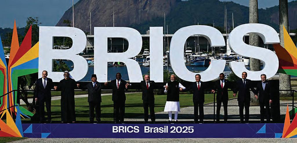 國氣候變化大會(COP30)做準備。 分析認為,金磚國家這種自相矛盾的態度, 可能是來自全球政治對新的制度框架的更廣泛訴 求,即南方國家希望能夠更積極地參與其中。有 些人認為,當今世界全球化日益碎片化,1945 年 後的自由國際秩序不僅效率低下,而且偏袒西 方。