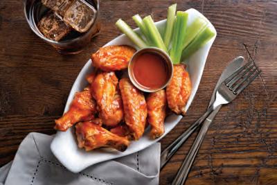 6.布法羅雞翼(Buffalo Wings): 這款香辣雞翼於 1964 年誕生於紐約州布法 羅,隨後迅速風靡全國。淋上牛油辣醬,佐以芹 菜和藍紋芝士,絕對是比賽日的必備佳餚。蘸著 牧場沙律醬,感受現代風味。