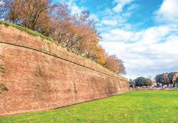 環繞城市核心最古老街區的城牆,是盧 卡最具標誌性的建築。早在古羅馬和中世紀 時期,城牆便已守護著這座城市;留存至今 的防禦工事建於文藝復興時期,並被修築得 格外厚實,以抵禦當時新出現的火藥和火炮 技術。