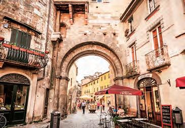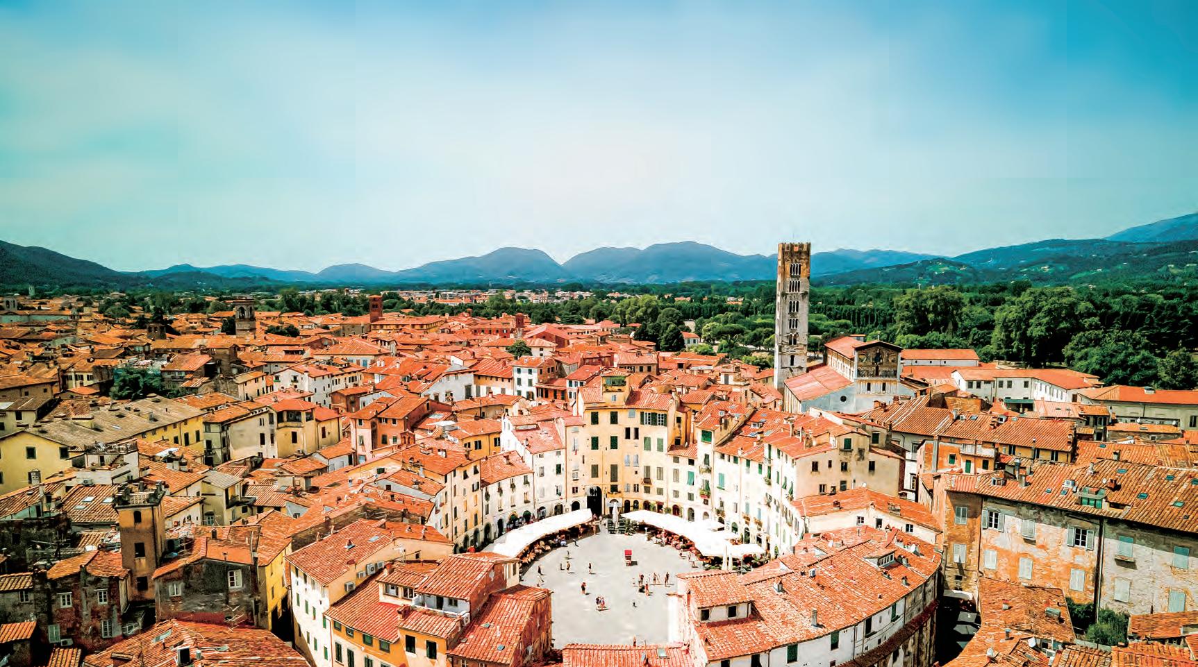 盧卡的城鎮景觀數百年來幾乎未曾改 變,其蜿蜒交織的街道匯聚了古羅馬、中世 紀以及文藝復興時期的建築風貌——將遊客 帶入一個彷彿讓往昔鮮活重現的世界。