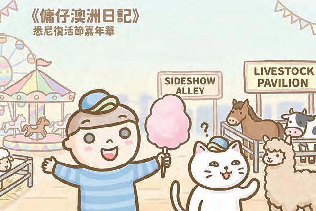 復活節長周末,我終於去了期待已久的 悉尼復活節嘉年華。這項一年一度的盛事, 是澳洲最具代表性的節慶活動之一。難得身 在悉尼,當然不能錯過,於是我特意安排了 一整天,親身感受這場熱鬧非凡的活動。 當天早上,我懷著興奮的心情出門,乘 坐公共交通前往會場。還未正式進場,已感 受到濃厚的節日氣氛。入口處人潮絡繹不 絕,色彩繽紛的旗幟迎風飄揚,遠處傳來遊 樂設施的音樂與歡呼聲,讓人不禁期待接下 來的精彩體驗。走進場內,繽紛的攤位與熱 鬧的遊樂設施映入眼簾,竟讓我想起香港中 環 AIA 的嘉年華,充滿歡樂。 場地非常廣闊,各個展區各具特色。我 首先來到農業區,這裏展示並售賣各式各樣 的澳洲農產品,從新鮮蜂蜜、果醬到乳製品 與特色小食,令人目不暇給,也讓人更貼近 澳洲的農業文化。附近還有動物展覽區,可 愛的草駝、綿羊與牛隻吸引不少家庭駐足拍 照,氣氛溫馨熱鬧。 另一個深受歡迎的區域是優惠福袋專