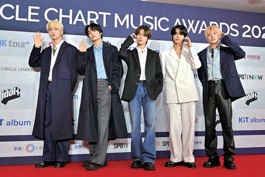 4 月 13 日,韓國男團 TOMORROW X TOGETHER(TXT) 舉行新專輯發表會,談及全員續約的 過程時透露,他們曾向 BTS 隊長 RM 請益相關經驗。RM 不僅翻找過往資 料提供建議,還感性說「已經 7 年了 辛苦了」,讓成員們深受感動。