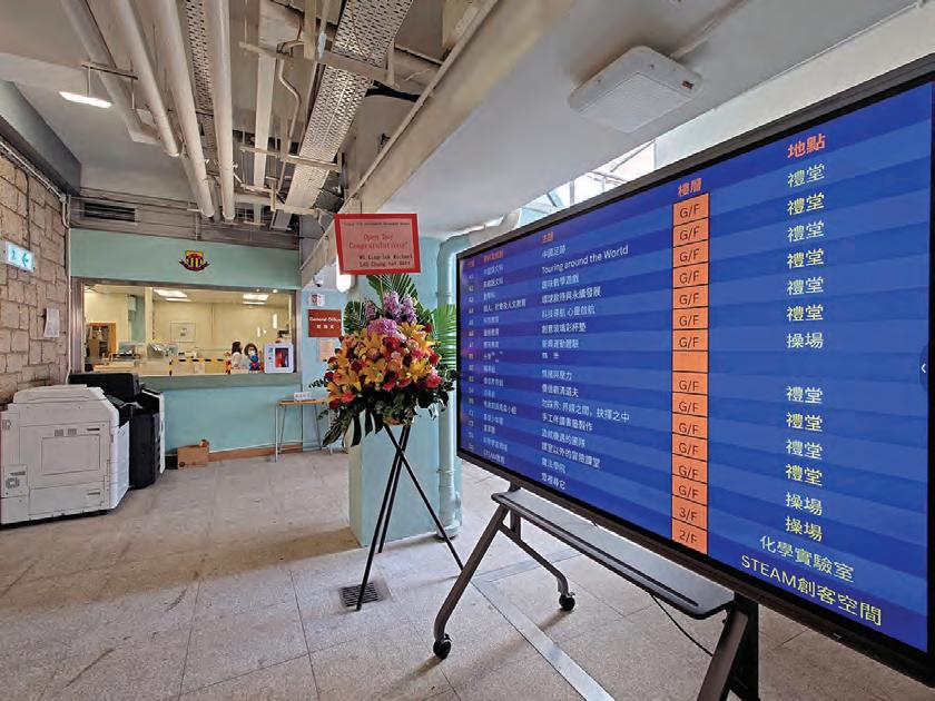 課室及特別室,欣賞介紹的展覽及參與相關遊戲 或工作坊。學校亦在地下禮堂安排了各種遊戲攤 位、學生才藝表演及友好學校邀請賽等共冶一 爐,好不熱鬧。◇