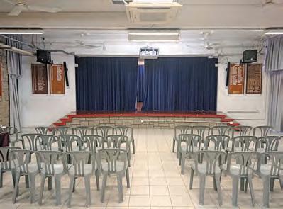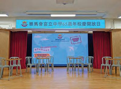 賽馬會官立中學 65 周年開放日時的禮堂佈置。攝於 2025 年。