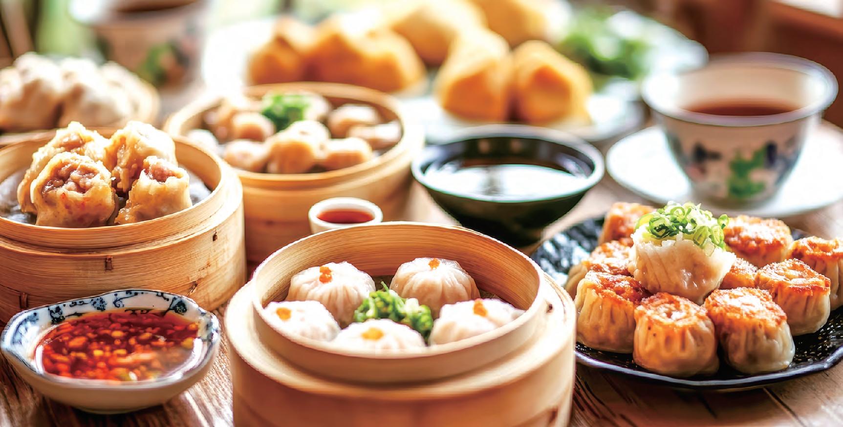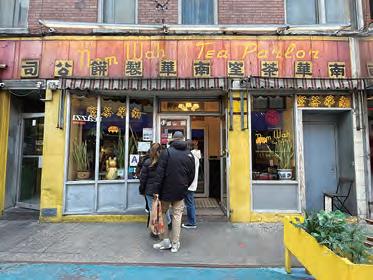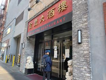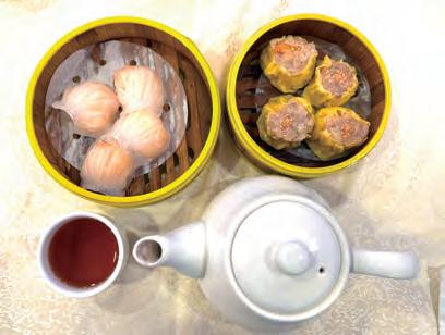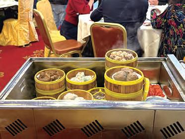 在華埠與曼哈頓多點開花的金滿 庭(Dim Sum Palace),擅長將早茶與 粵菜小炒打包成一套完整體驗。午間 是流沙包、水晶蝦餃、鮮蝦腸粉的經 典組合,尤其推薦 XO 醬煎蘿蔔糕, 蘿蔔糕外酥裏嫩,辣醬風味經典;金 滿庭晚間則以鑊氣見長的小炒上場, 海鮮、臘味與時蔬火候分明。無論客 人喜歡快餐燒味,還是現蒸熱炒,甚 至在酒吧飲一杯,多間不同風格的餐 廳,都能給予食客不同的選擇,讓 「一盅兩件」順勢延伸為「一壺數味」。 「一盅兩件」為何歷久常新?答案 也許很簡單:因為它包容。茶樓的桌 面上,既容得下老火湯的溫婉,也容 得下 XO 醬的奔放;既載得動老人家 偏好的陳年普洱,也照顧到年輕人的 新口味。推車在、手藝在、說粵語點 餐的親切在。飲茶就是用一家團聚的 溫暖,去修補大城市的疏離。◇