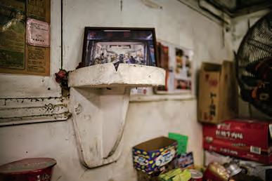 茶室的裝潢和格局跟以前相若,茶室 內的枱櫈早已搬走,取而代之,是一堆一 堆的舊日記憶,舊日的照片、報紙訪問 貼在牆上。鋪內的爐灶,和在牆上的風 扇座,幾十年來仍在,跟華叔一起見證歲 月。「茂發茶室」現在就是華叔的一個家, 常常跟待在這裏的老街坊相聚,聊天打牙 骹,輕輕鬆鬆又一天。