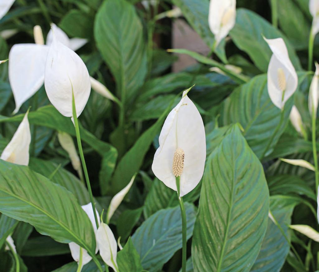 就光線而言,白鶴芋每天需要 6 至 8 個小時的間接光線。它們在原產 地是喜陰植物,但在室內種植就需要 多一些過濾光線。朝東的窗戶是擺放 白鶴芋盆栽的理想地點。