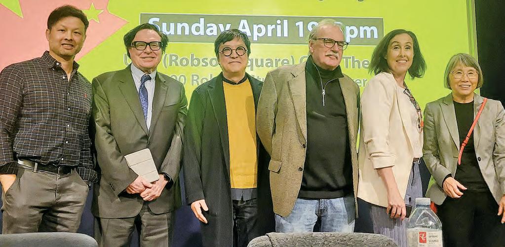 █ 2026 年 4 月 19 日,溫哥華支援民主運動聯合會舉辦了一場座談會,邀請了四位中國問題智庫專家來探討「加拿大民主遭 遇到挑戰」。圖為座談會主辦方和嘉賓(從左到右):梁恩(Edmund Leung)、伯頓(Charles Burton)、姚永安、格拉文 (Terry Glavin)、唐克沃特(Elizabeth Donkervoort),和李美寶。(邱晨/大紀元) 理人必須公開申報;同時,加拿大警 方必須更認真處理有關中共代理人騷 擾華裔、維吾爾族、西藏人事件,讓 這些中共代理人接受司法審判。 姚永安: