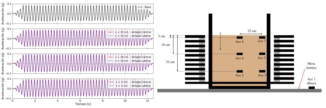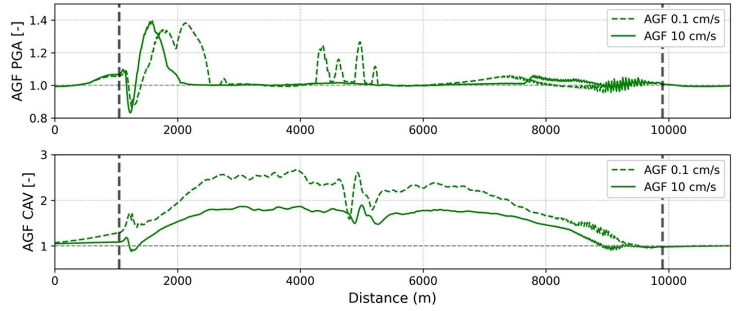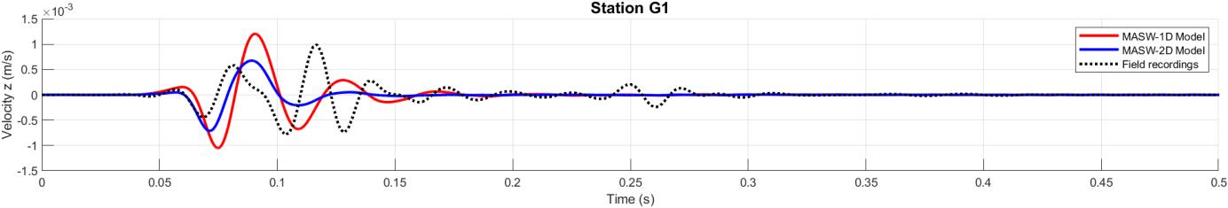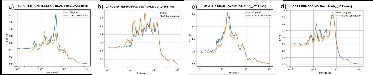 La respuesta de sitio fue validada mediante la comparación entre la propagación unidimensional del movimiento sísmico, modelada en el software de Elementos Finitos (EF) con el modelo constitutivo PDMY02 capaz de representar el comportamiento no lineal del suelo, y un análisis unidimensional Lineal Equivalente que incorpora la degradación del módulo de corte en función de la deformación, según Darandeli (2001)⁶, Figura 2. En esta investigación se emplearon los registros sísmicos de Rapel para validar el comportamiento sísmico del suelo en condición de campo libre.