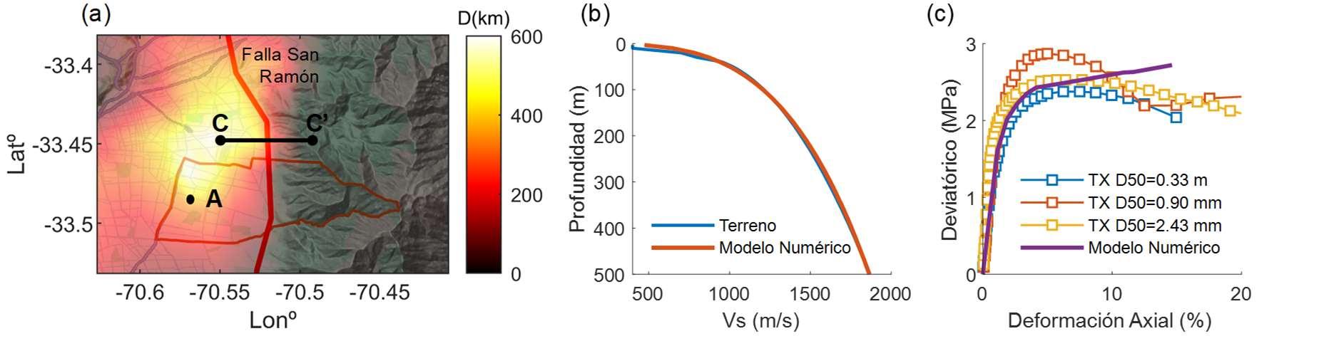 En el presente trabajo se consideró un suelo tipo D, clasificado como medianamente denso a firme2. El análisis no lineal se realizó mediante EF, utilizando el modelo constitutivo PressureDependMultiYield02 (PDMY02), con parámetros obtenidos a partir de correlaciones empíricas3