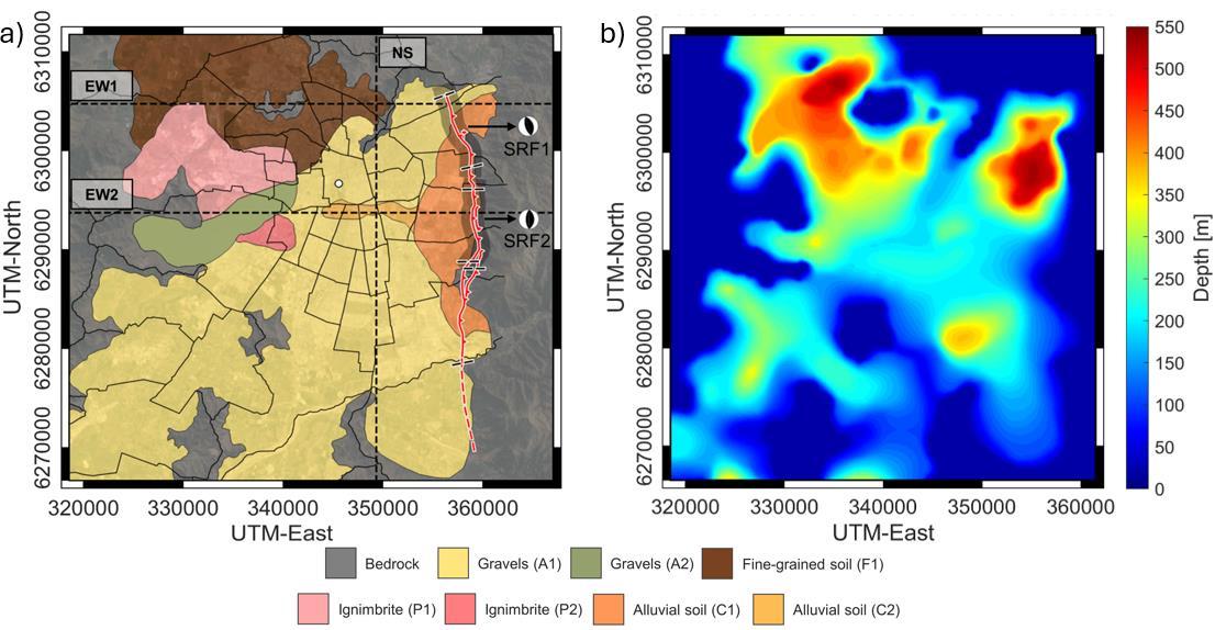 El dominio del suelo incorpora Bordes Absorbentes, Figura 1 (a), cuya función principal es simular las condiciones de campo infinito. El tamaño de los elementos se definió en función de la mínima longitud de onda (λmin) a transferir a través del suelo según la velocidad de onda de corte (Vs) y la frecuencia máxima del registro sísmico (fmax) considerada como frecuencia de interés. En esta investigación se empleo la demanda sísmica de Rapel para determinar los empujes sísmicos aplicados sobre los muros de sótano de la estructura.