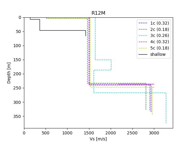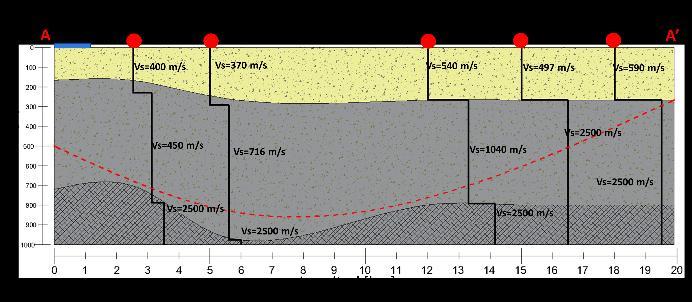 • Para las masas deslizantes se asumen velocidades de onda de corte constantes entre 150 y 550 m/s.