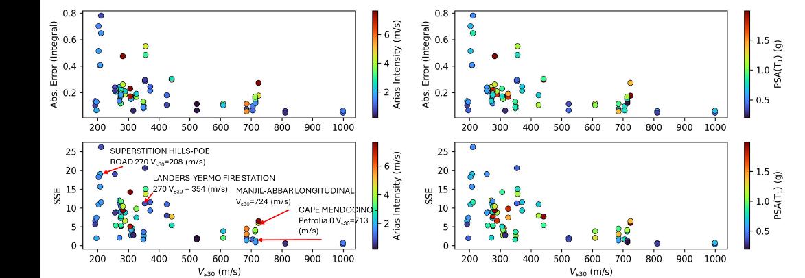 • Los parámetros con mayor influencia en los desplazamientos predichos por el modelo simplificado la aceleración espectral [Sa(1,5Ts)] y el período fundamental (Ts) de la masa deslizante.