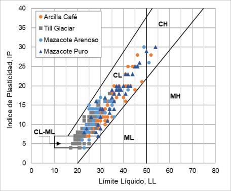 Tabla1:Resultadosdeíndicedeplasticidad,gravedadespecifica, densidadmínimaymáxima,índicedevacíosmáximoymínimoy superficieespecifica.