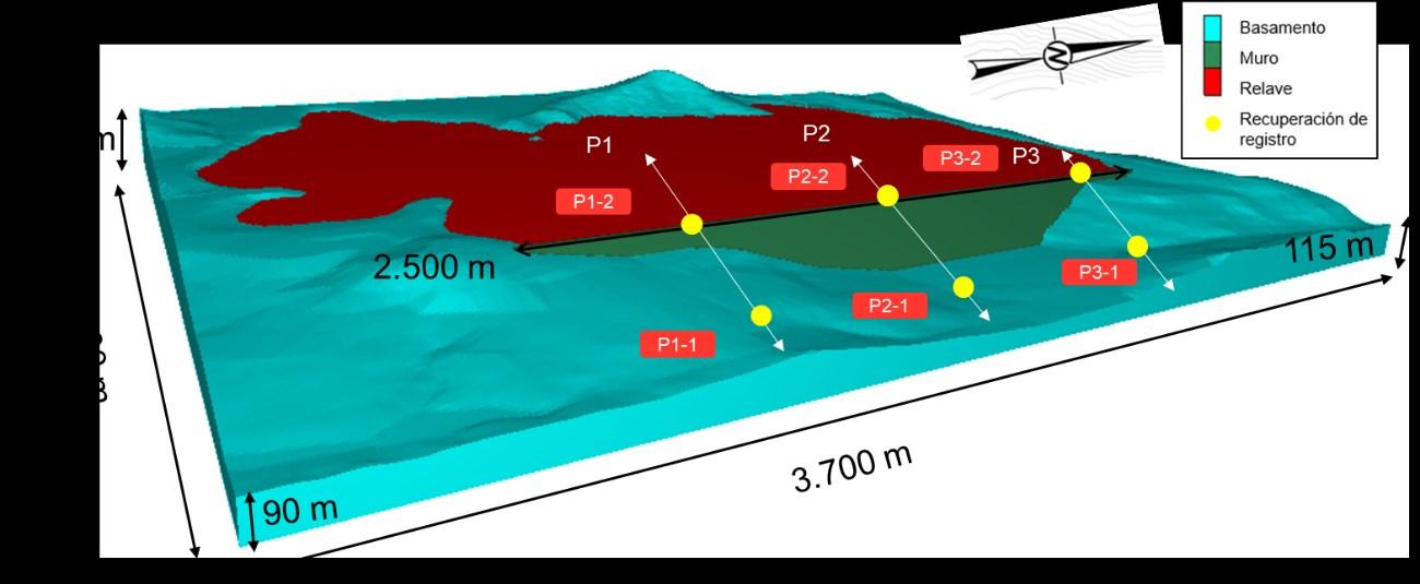 • Se estudian 6 presas de relaves chilenas construidas con los métodos aguas abajo o eje central, a partir de materiales de enrocado o empréstito y cuyas alturas están en el rango entre 30 y 155 m.