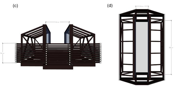 Figura 1: Montaje experimental y geometría del disco: (a) Estanque con ventana transparente, (b) Pieza de aluminio (115 mm de diámetro) (c) Diseño 3D en Autodesk Fusion 360