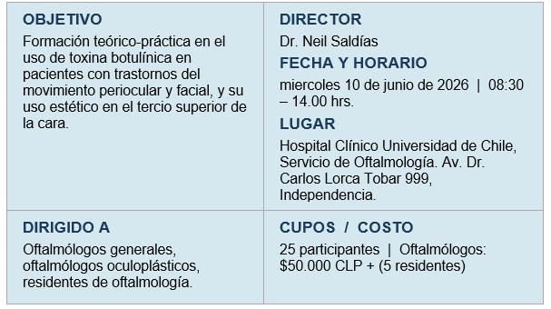 Microscopio quirúrgico, Facoemulsificador (líneas, cassette, parámetros básicos) , Vitrector, Instrumental microquirúrgico (pinzas, tijeras, cánulas, blefaróstatos), Identificación de instrumental en mesa y armado básico de mesa quirúrgica