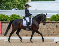 “His barn name is Petey, his personality is aloof, he loves to play in the FEI jogs, but is all business under tack.”