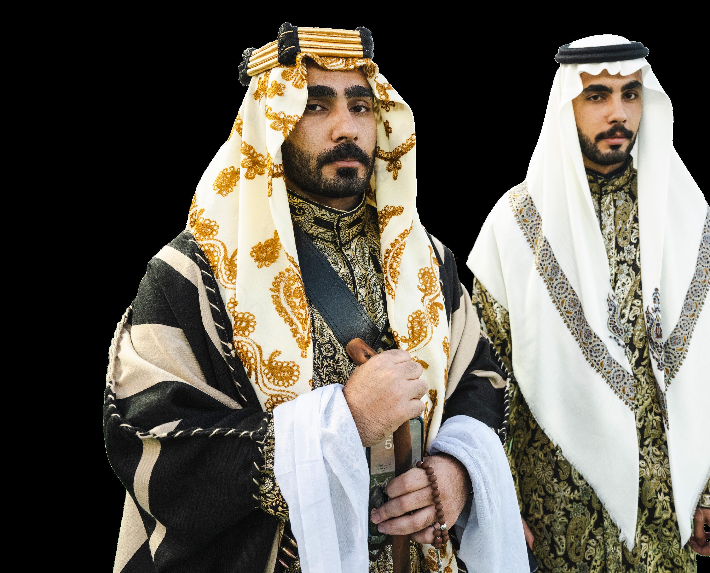 • Thobe & bisht, with agal and ghutra or shemagh.