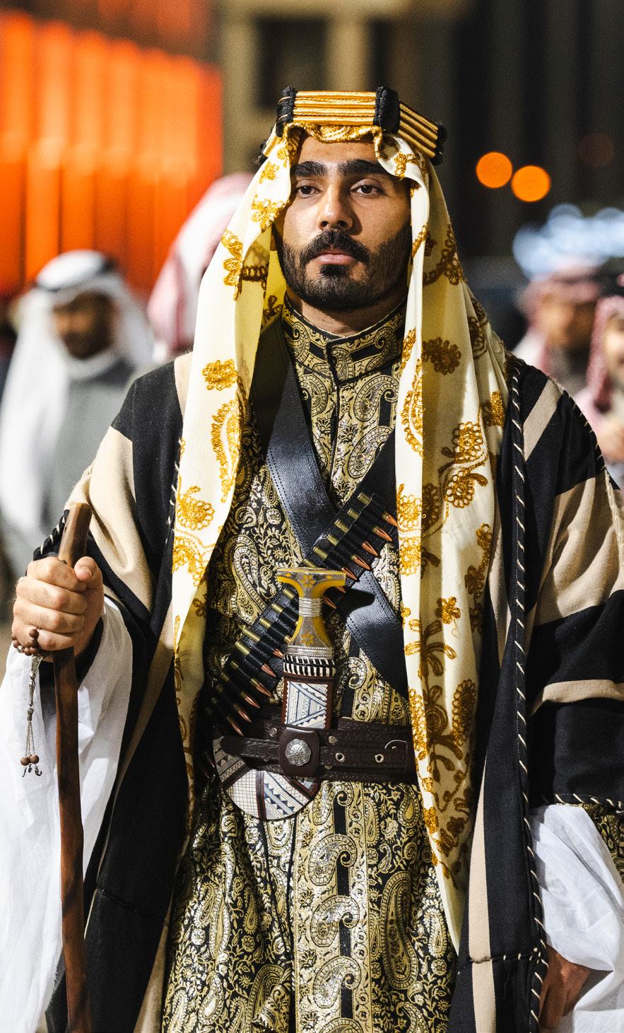 • Abaya and thobe with designs inspired by the traditional fashions of Saudi Arabia. A modest approach to length and fabric should be taken, in line with Saudi traditions.