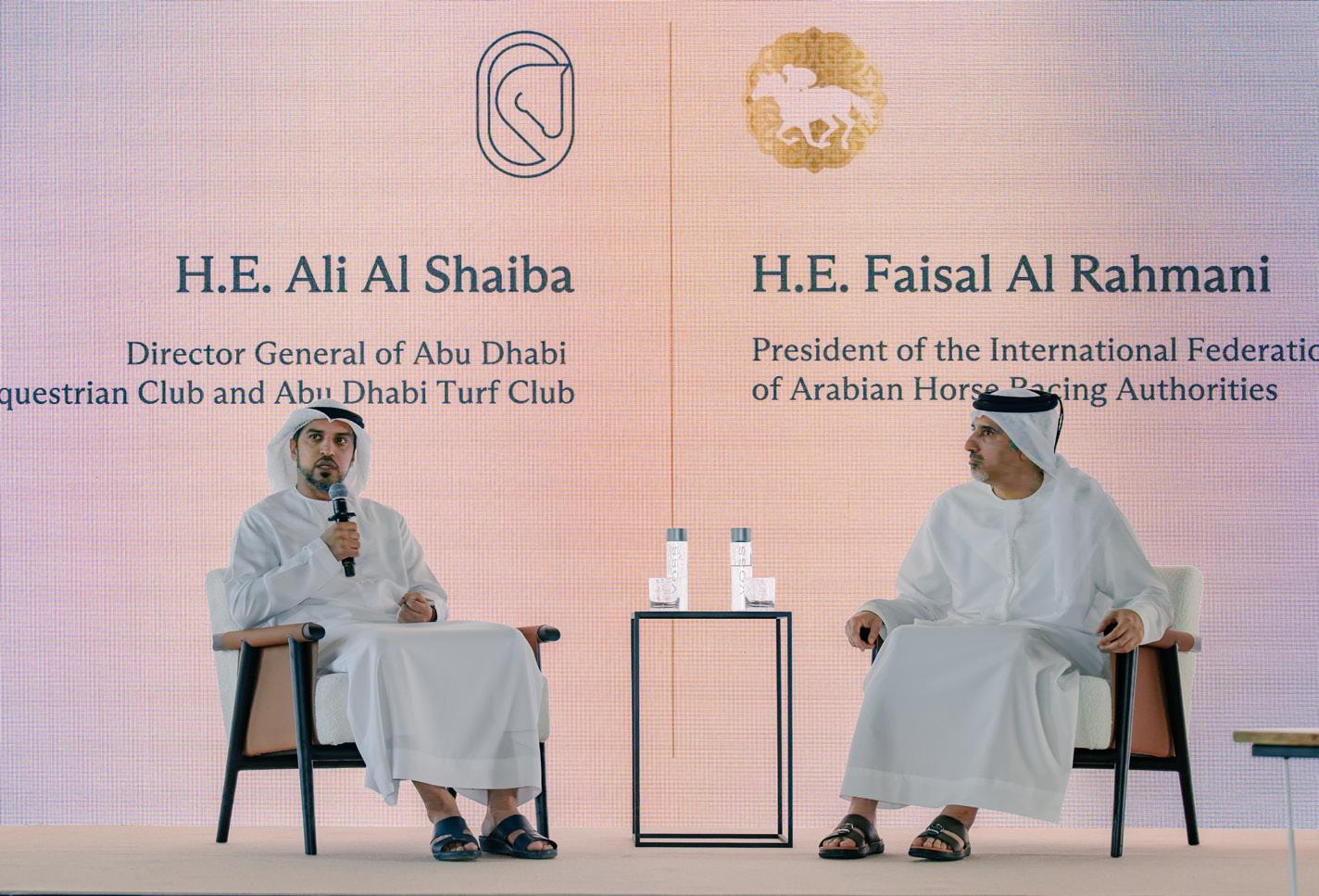 TOP: H.E Ali Al Shaiba and H.E Faisal Al Rahmani answer questions at the press conference. ABOVE: The barrier draw was conducted at the Abu Dhabi Equestrian Centre where the indoor arena became a concert hall for the live orchestra.