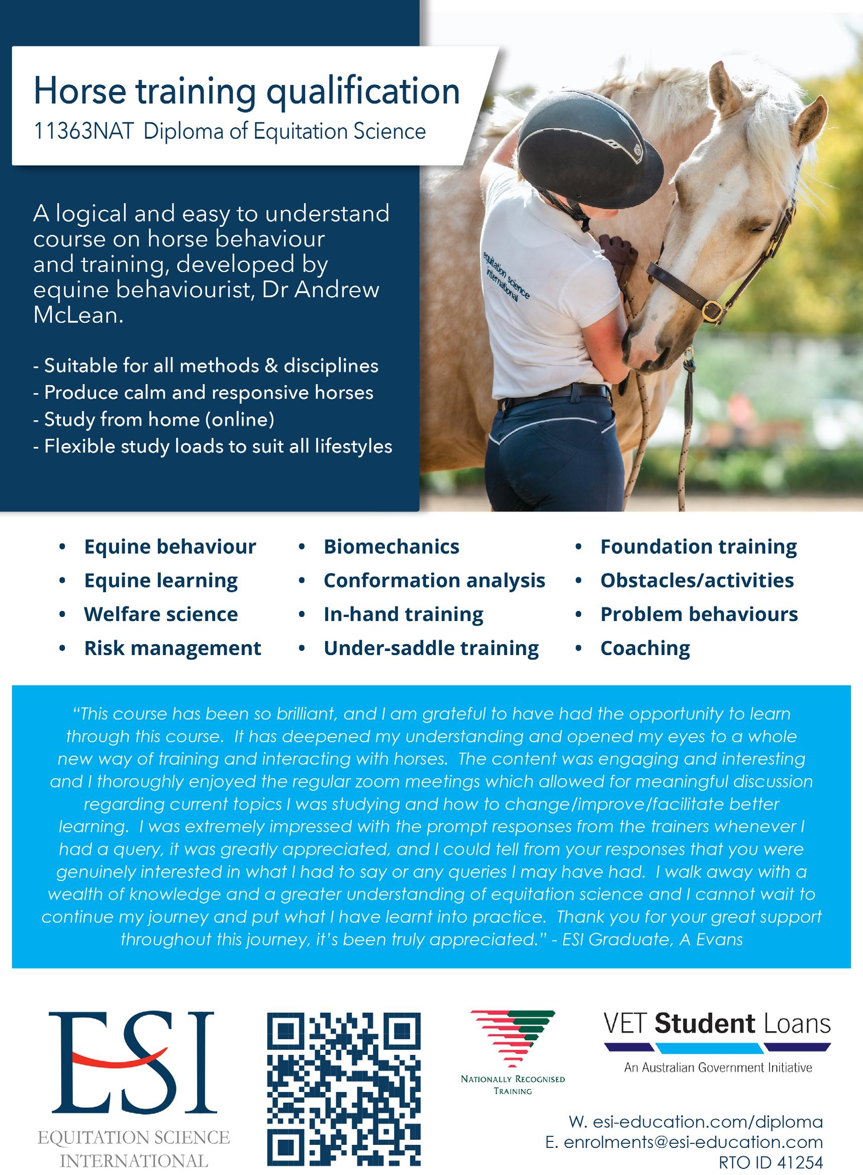 Andrew is the CEO of Equitation Science International, and an Honorary Fellow of the International Society for Equitation Science. He's a member of both the FEI's Equine Welfare Advisory Group - tasked with providing independent advice on the FEI's Equine Welfare Strategy - and their Ethical Training Methods Expert Consultative Group. In this issue, he goes in depth on understanding the horse’s mind and how they learn.