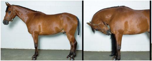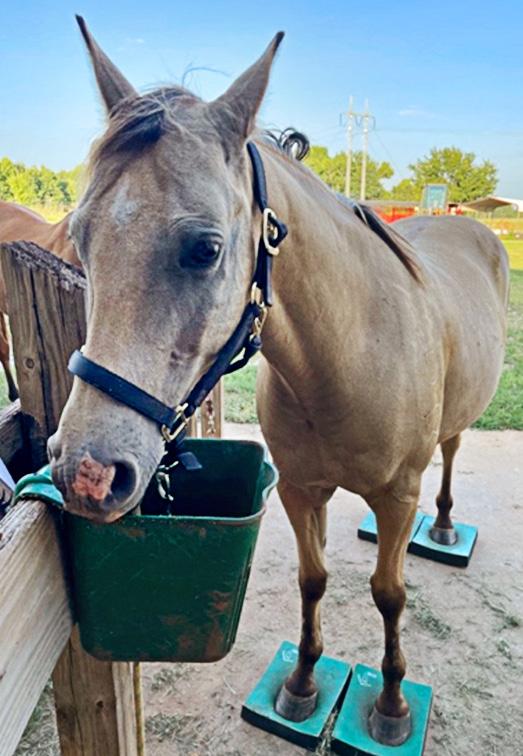 ABOVE: Standing your horse square with all four feet on green (firm) balance pads for five minutes, twice daily, five days per week for four weeks can improve postural stability and increase back muscles mass (learn more).