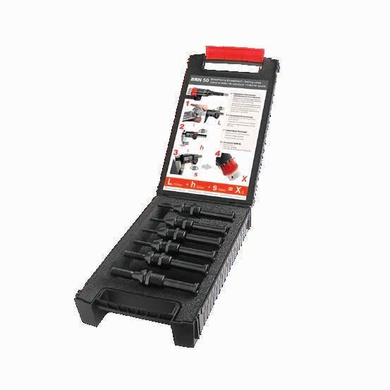 20 Meer informatie? �� 0184 - 430 044 Mondstukken voor BR50/BR80 Standaard mondstukken voor BR20/BR50 Standaard mondstukken voor BR20/BR50 Voor het verwerken van blindklinknagels Extractie van zelfponsende klinknagels met lasbouten voor aluminum voor staal Art. nr. 703131 703132 703133 703134 703135 703137 703139 703136 703138 703140 Ø mm 5.1 - 5.5 4.5 - 5.1 4.0 - 4.5 3.4 - 4.0 3.0 - 4.0 4.0 - 5.0 6.0 - 6.5 3.0 - 4.0 4.0 - 5.0 6.0 - 6.5 BR50 3-5.5 mm X X X X X X X X BR50 5.5-7 mm X X BR 80 3-5.5 mm X X X X X X X X BR 80 5.5-7 mm X X Platte kop Holle kop Art. nr. 700518 700519 700520 700521 700523 700522 700359 name 3.2A 3.6A 4.0A 4.5A 4.5B 4.8B 5.1B Ø mm 3.2 3.6 4.0 4.5 4.5 4.8 5.1 Voor RIBE blindklinknagels Voor RIBE blindklinknagels BR20 X X X X BR50 X X X X X X X Voor het verwerken van blindklinknagels Art. nr. 700204 700215 700524 700525 700532 Naam Tool Box (4 st.) Tool Box (7 st.) 3.2 C 3.6 C 3-AL Ø mm 3.2 - 4.5 3.2 - 5.1 3.2 3.6 3.2A 3.6A 4.0A 4.5A 3.2A 4.5B 3.6A 4.8B 4.0A 5.1B 4.5A Voor blindklinknagels in het gebied